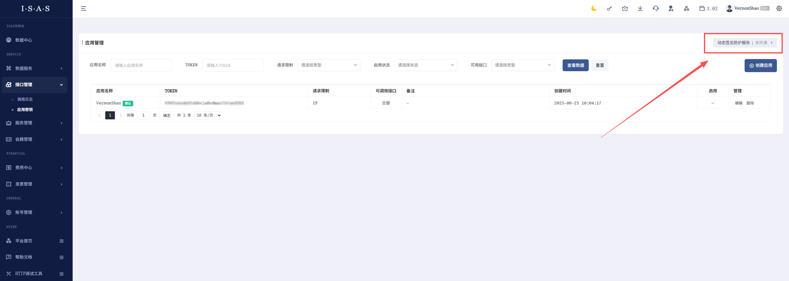 进入控制台--接口管理--应用密钥--启用动态签名防护功能